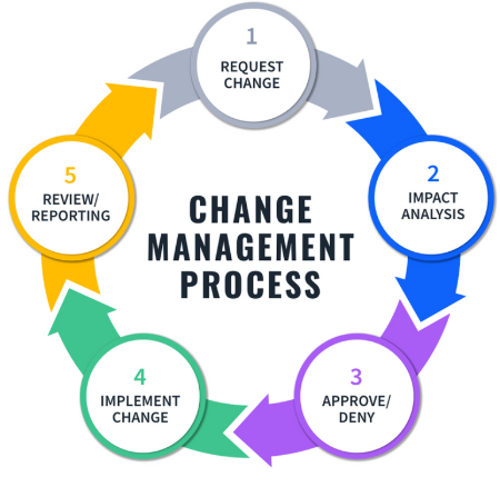 Change Management merupakan pendekatan pengelolaan transisi individu, tim, dan perusahaan dari keadaan/kondisi saat ini ke kondisi masa depan yang diinginkan. Change manajemen adalah proses merencanakan, mengelola dan mengimplementasikan perubahan dalam organisasi. Training Change Management bertujuan membantu para eksekutif untuk menerima dan merangkul perubahan dalam lingkungan bisnis mereka.